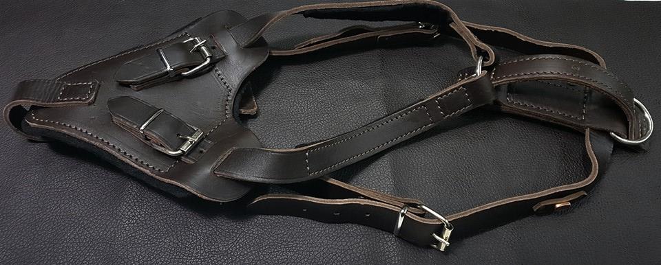 Pettorina in pelle con maniglia centrale per cane sportivo