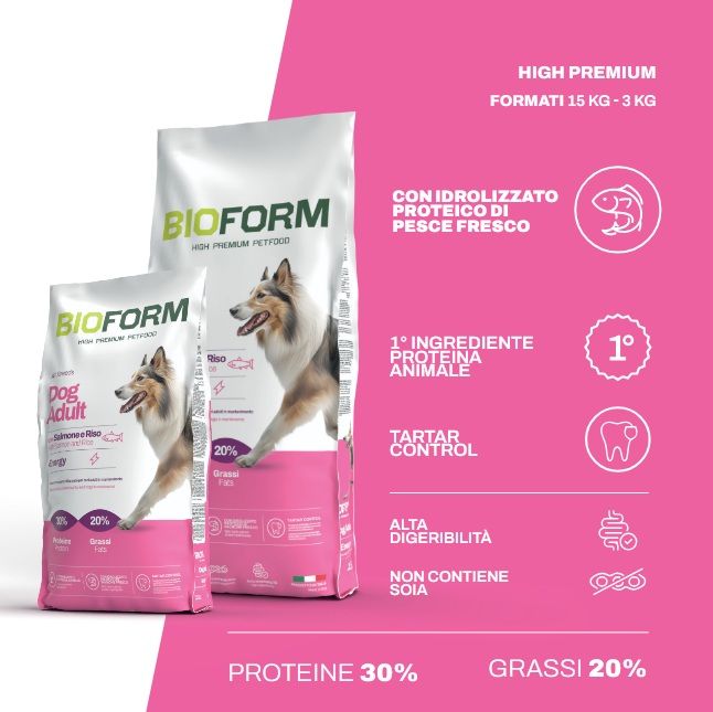 Bioform Salmone e Riso per cani Adulti di tutte le Razze - 15kg