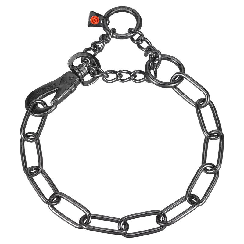 I collari a catena realizzati in acciaio inossidabile spesso solo 4 mm sono molto più resistenti, sicuri e facili da pulire rispetto ai collari convenzionali in nylon o pelle.