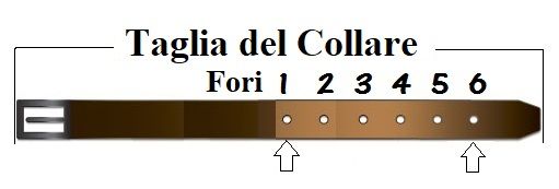 | Taglia | La dimensione dei collari si misura dal primo all'ultimo foro | Pelle Larga | Adatto per |