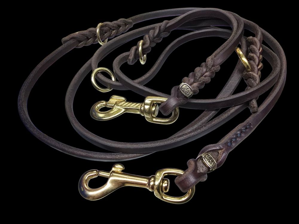 Guinzaglio in cuoio Arrotondato Multifunzionale CITY regolabile - 6,8X250cm