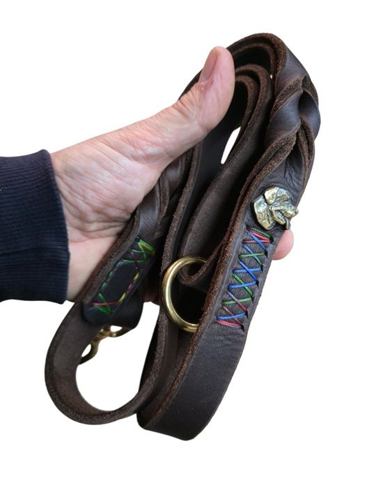 La novità del nostro negozio è un guinzaglio speciale in cuoio con due maniglie. Con questo accessorio, il vostro campione è sempre sotto il vostro controllo. La prima maniglia si trova al centro del guinzaglio e consente di controllare e fermare il cane o tenerlo vicino, la seconda maniglia permette di lasciar andare il cane abbastanza lontano. Il nostro guinzaglio è molto forte da resistere alla forza di un cane adulto, perché è fatto di materiali durevoli di alta qualità. Questa versione del guinzaglio è versatile, è possibile utilizzarlo come un guinzaglio da addestramento del cane e per le passeggiate con il cane. Il guinzaglio comodo e pratico è uno strumento ideale per l'educazione del vostro animale.