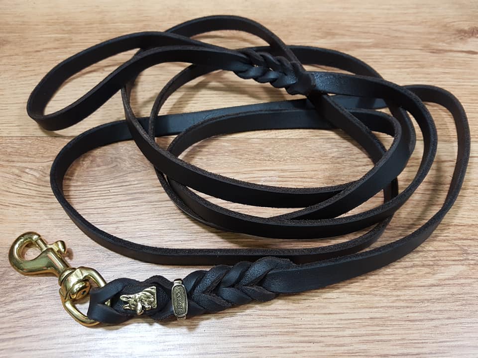 - Guinzaglio in cuoio morbido, senza maniglia finale.